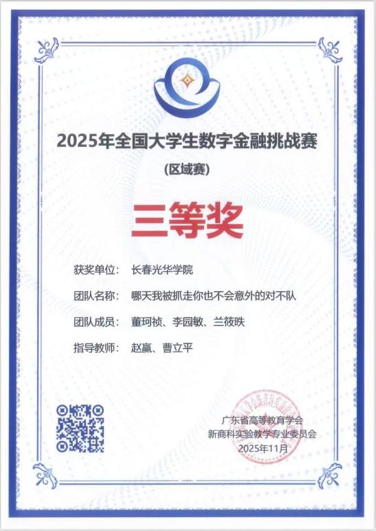 2025年11月2日,由广东省高等教育学会新商科实验教学专业委员会主办,金融虚拟仿真国家级实验教学中心协办的2025 ICAN大学生创新创业大赛数字金融挑战赛区域赛(以下简称2025 数字金融挑战赛)圆满落幕。经过一天激烈比拼,yl6809永利官网集团派出的五支代表队荣获区域赛三等奖5项。这一赛事成果既彰显了参赛学子出色的跨专业素养与灵活的实战应变能力,也印证了yl6809永利官网集团在新商科实验教学领域的培育实效。
