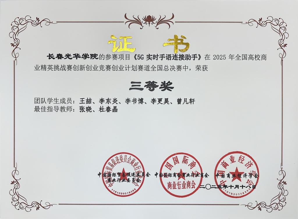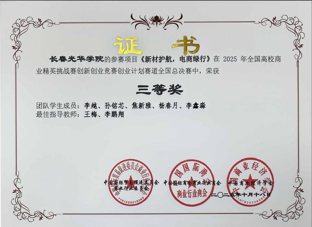 yl6809永利学子斩获2025年全国高校商业精英挑战赛创新创业竞赛创业计划赛道全国总决赛三等奖!