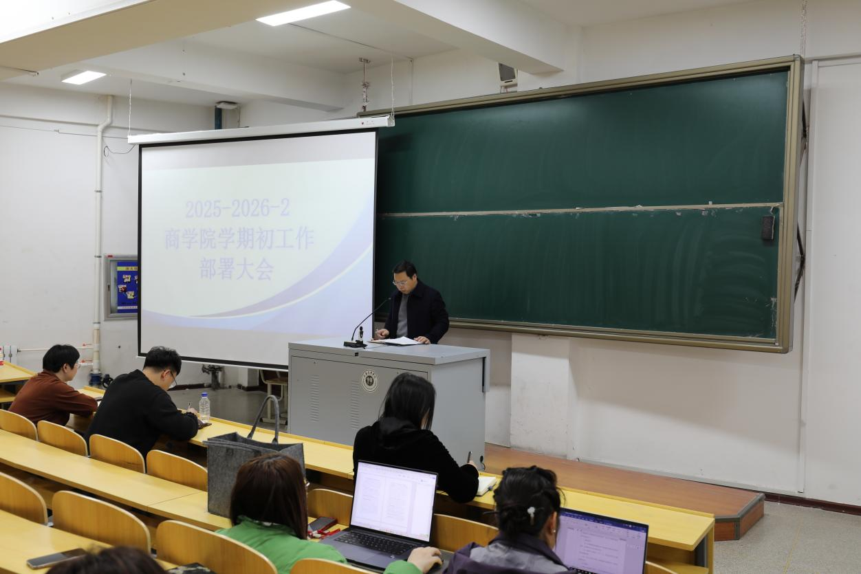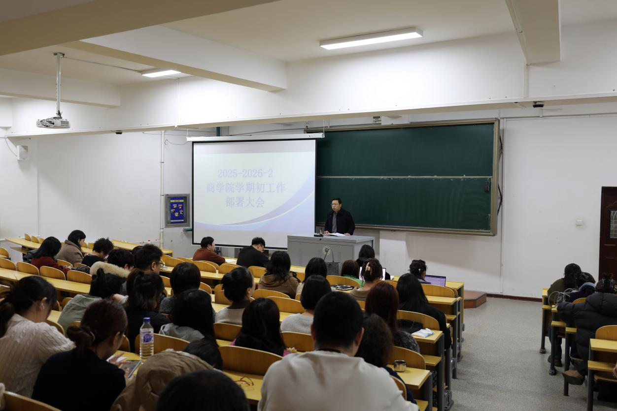 随后,周佰成院长针对本学期重点工作作出具体部署:要求全体教师认真完成上学期期末试卷存档资料的检查与整改工作,扎实推进2026届毕业论文全过程指导与管理,引导学生确立契合社会实际、小而精的选题,严格把控学术质量;同时启动“教学能力提升月”系列活动,通过教学研讨、示范课观摩等形式,助力教师优化教学设计、提升育人实效。