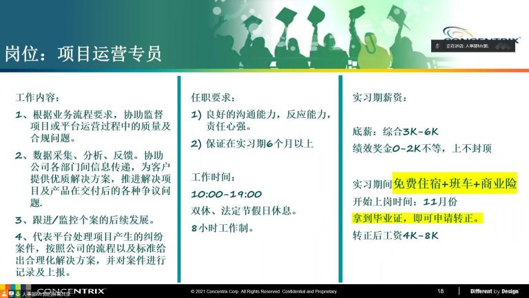 除此之外,宣讲人介绍了公司的薪酬福利和趣味活动,并向同学们讲述公司会在节日时举办许多有趣的活动,如中秋晚会、万圣节舞会、公司年会等。同时公司环境适宜,有独立工位和不错的住宿环境。职业介绍方面,本次宣讲会主要招聘运营专员等职位,讲解了岗位职能、任职要求与福利待遇等内容。最后,主讲人郭宝贺开始了答疑环节,通过答疑解惑,同学们对此次宣讲会的内容有了更深层的理解。
