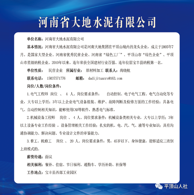 招聘:运营专员、普工、安装工30人(长期招聘),应往届毕业生10人,商务经理/运营经理5人,焊工/电工5人,污水处理工艺技术员2人,标书主管/专员2人,安全工程师1人,工程资料员1人,联系人:严先生 15139025022(微信同号)邓女士 19539126236(微信同号),地址:周口市商水县陈胜大道中段西侧