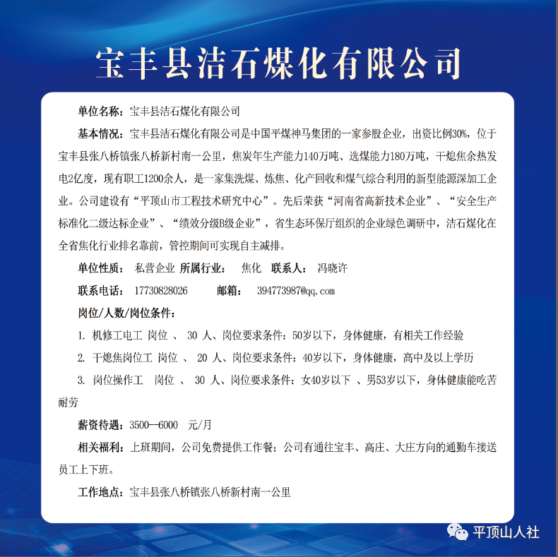 招聘:淀粉/糖车间经理2人,淀粉/糖车间主任5人,淀粉/糖车间技术员20人,热电联产电厂值长4人,热电联产电厂技术员20人,机电仪技术员20人,淀粉/糖QC、QA岗10人,贸易业务员5人,贸易运营计划员5人,保安5人,联系人:王永杰,电话:18595370183,地址:周口市开发区