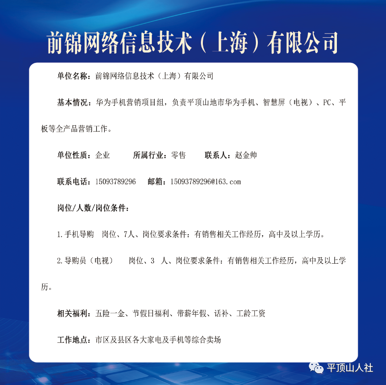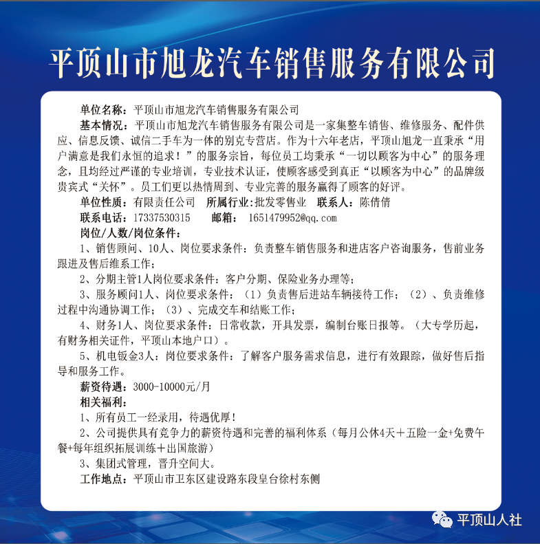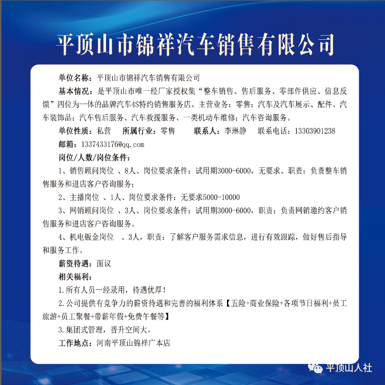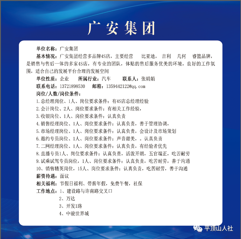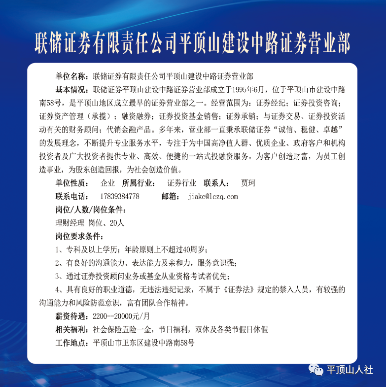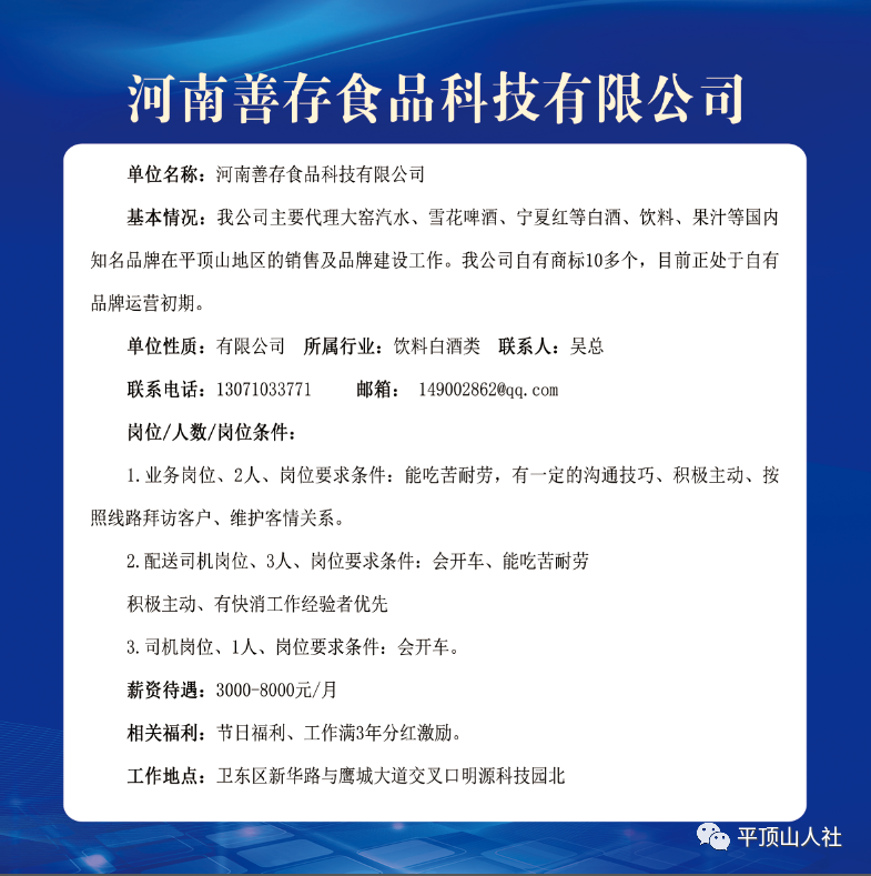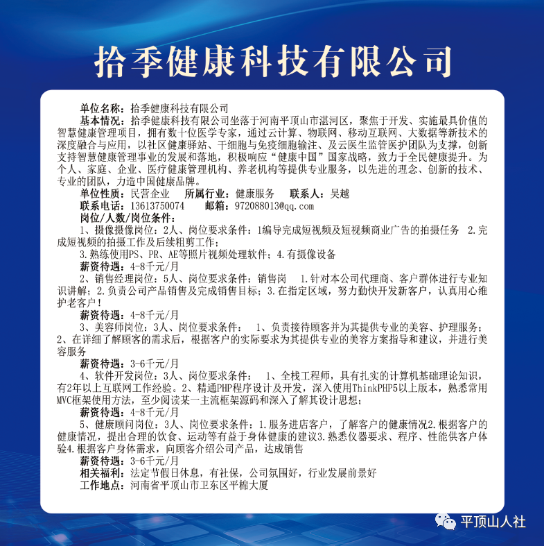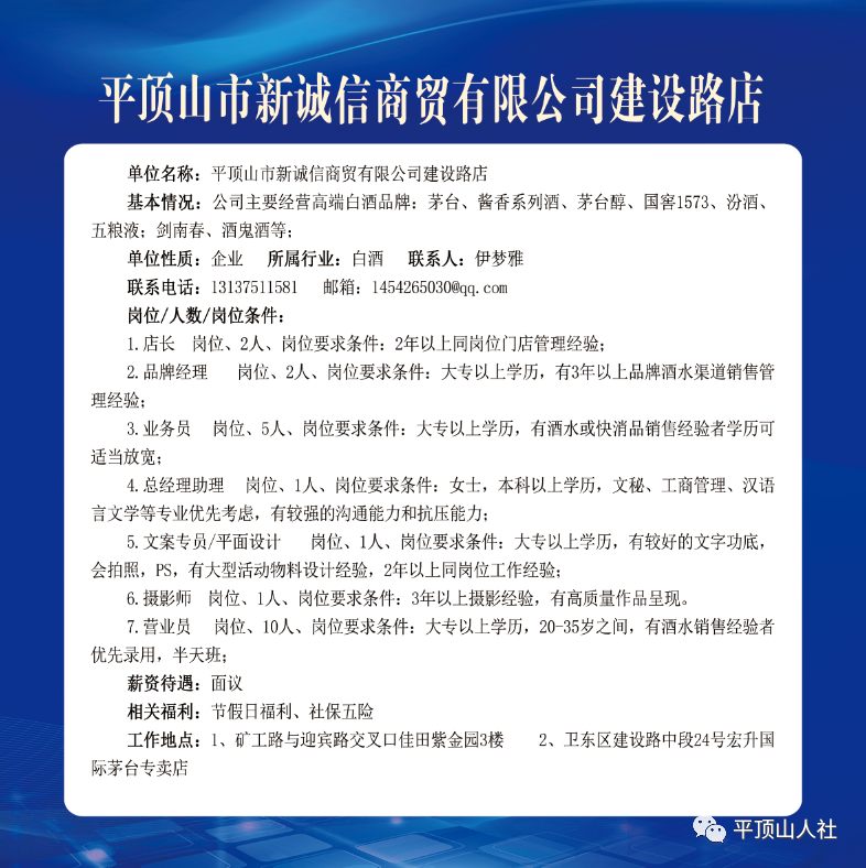 岗位要求:年龄40岁以下,有相关工作经验者优先考虑;