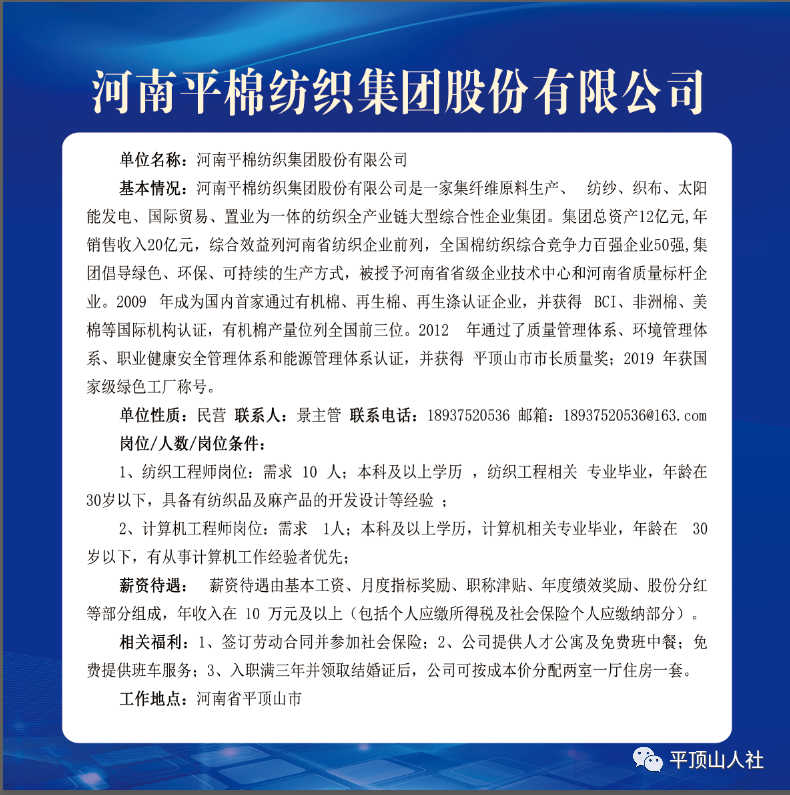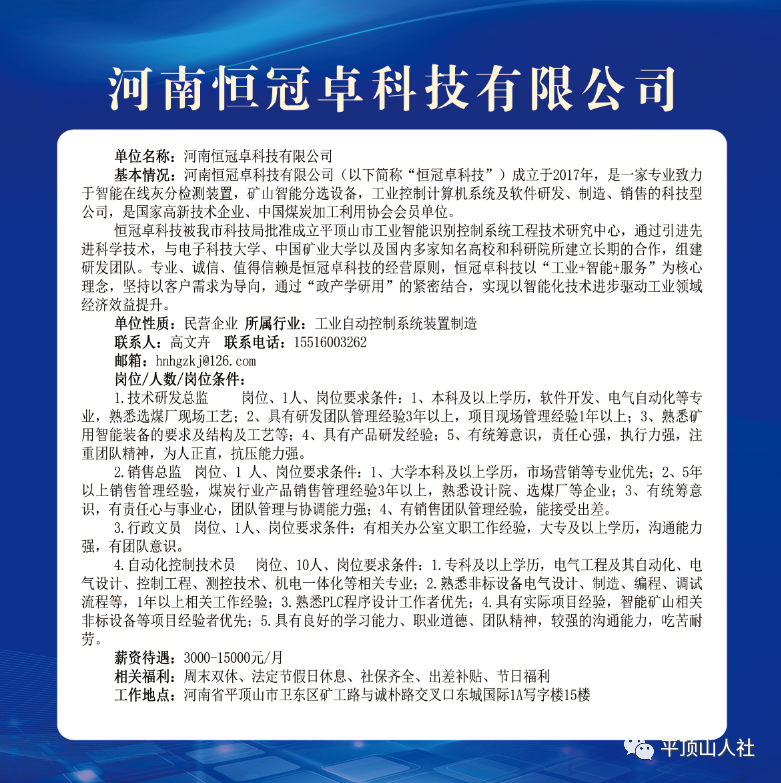 岗位要求:年龄35岁以下,有行政管理、生产技术管理、安全、统计等相关管理工作经验