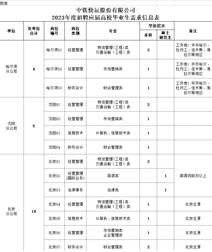 二、应聘条件1、列入国家统一招生计划、在校期间为非在职的应届高校毕业生;经国家教育部留学服务中心认证的留学回国人员。毕业生应按时毕业,报到时取国家认可的毕业证和学位证。其中:对毕业后户口、档案、组织关系仍保留在原毕业学校,或保留在各级毕业生就业主管部门(毕业生就业指导服务中心)、各级人才交流服务机构和各级公共就业服务机构,且至今未与其他单位建立劳动关系的2022年高校毕业生,可以按照2023年应届毕业生身份参加应聘。2、品行端正,遵纪守法,身心健康,具有良好的团队合作精神,热爱铁路事业。3、学历、专业符合报考岗位要求,具备岗位所需的专业素养和能力要求。4、学习成绩优良,能按时取得相应的学历学位证书。5、吃苦耐劳,服从工作分配,能够胜任基层生产一线岗位,适应艰苦工作环境。