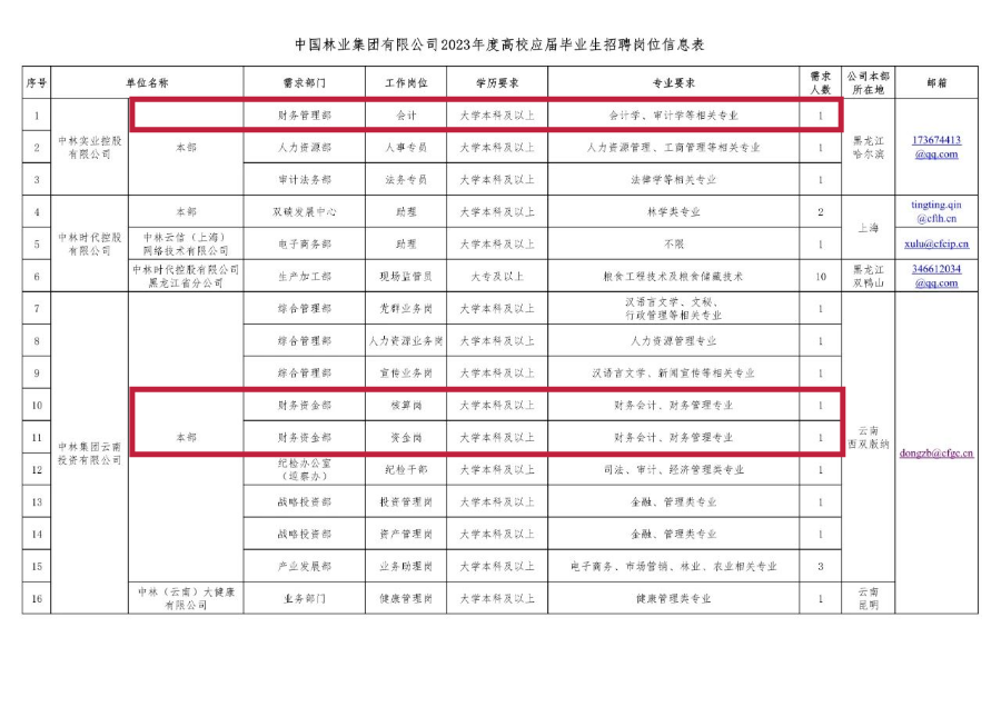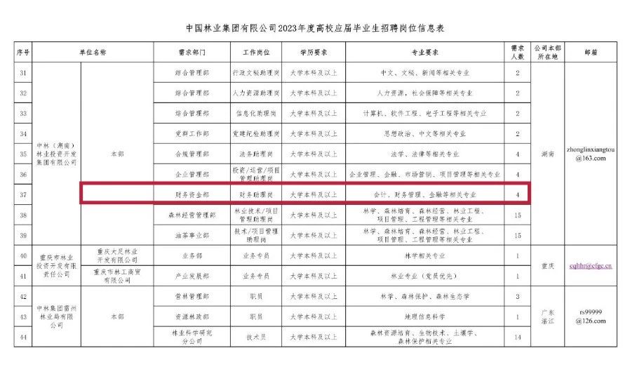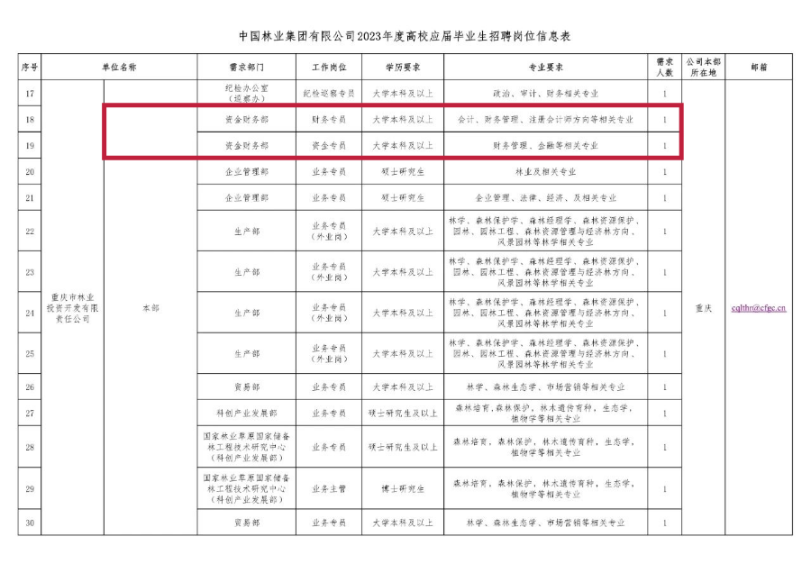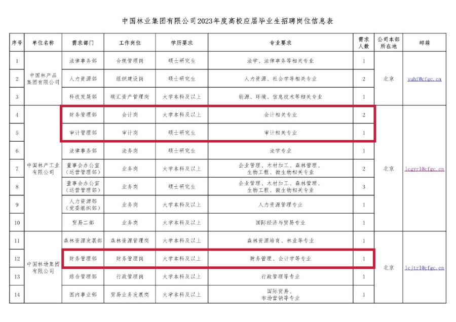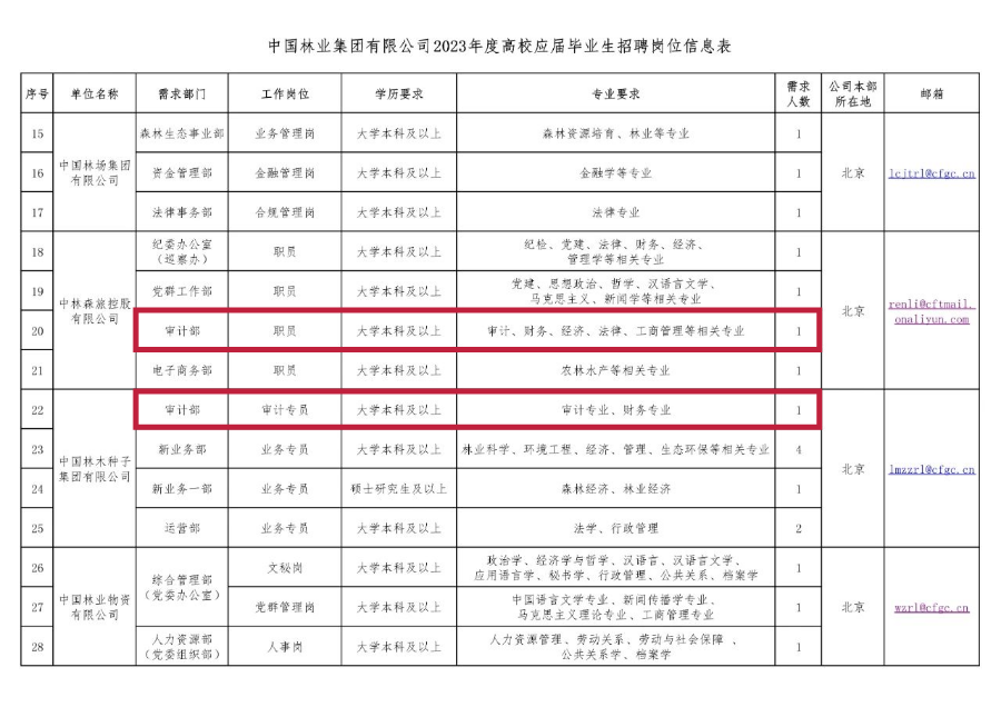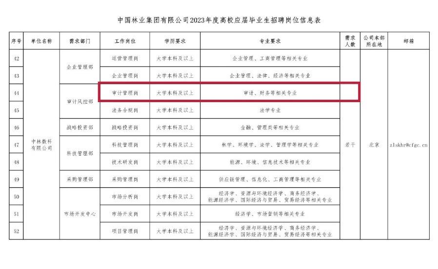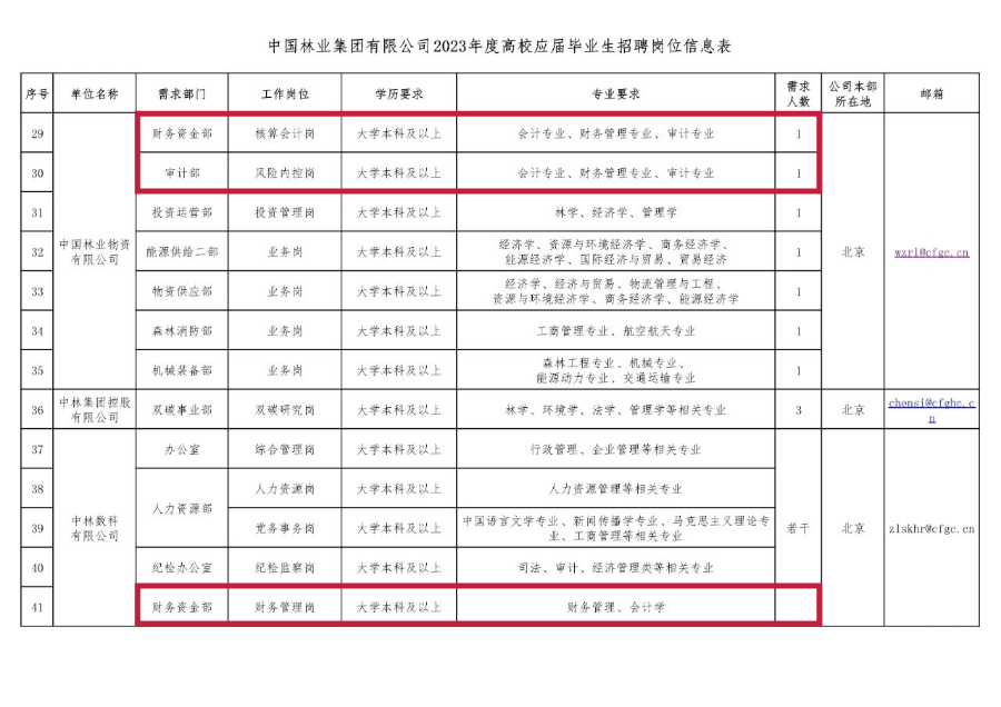 1.中国林业集团有限公司2023年度高校应届毕业生招聘岗位信息表