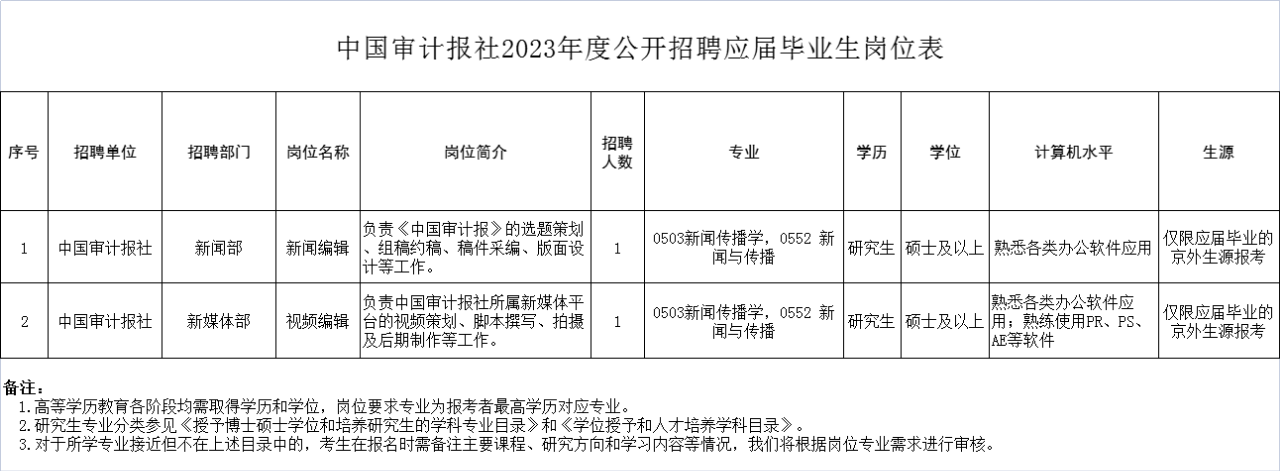 (三)笔试、面试均由中国审计报社统一组织,主要测试应聘人员的综合素质和专业能力,无指定复习材料。