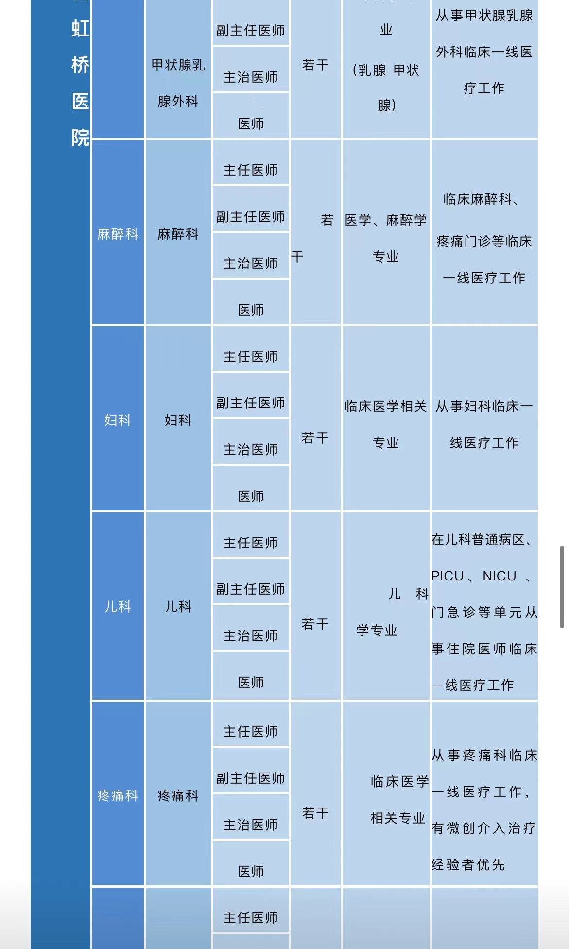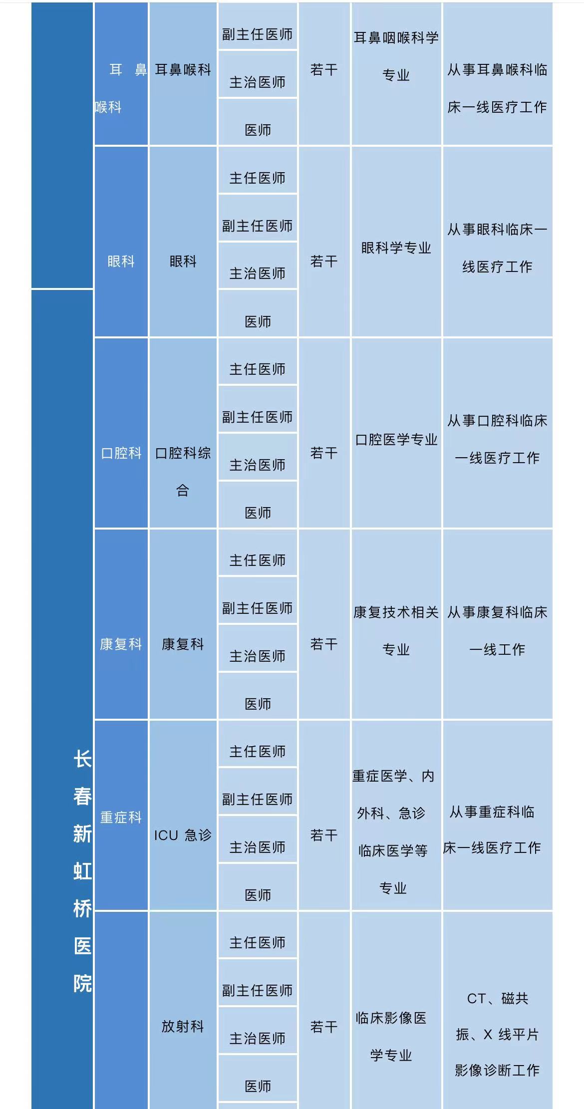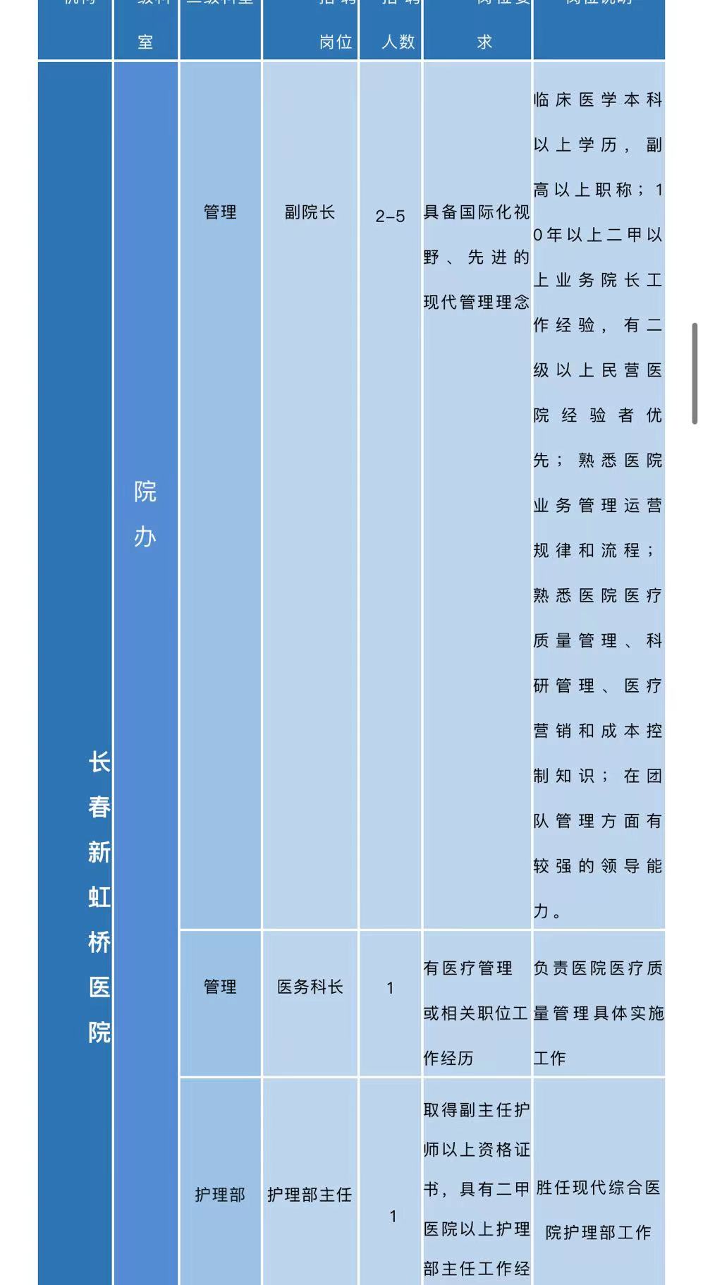三、长春新虹桥医院2023年度招聘需求一览表