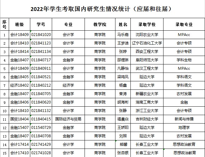 2022年我院共有15位优秀学子在考研赛场上取得佳绩,获得了通往更高学府的通行证。这一路走来,或疲惫过、或跌倒过,但依然一直坚持着考研的梦想。他们奋力一搏,一战成硕!让我们为成功逐梦的同学送上祝贺!