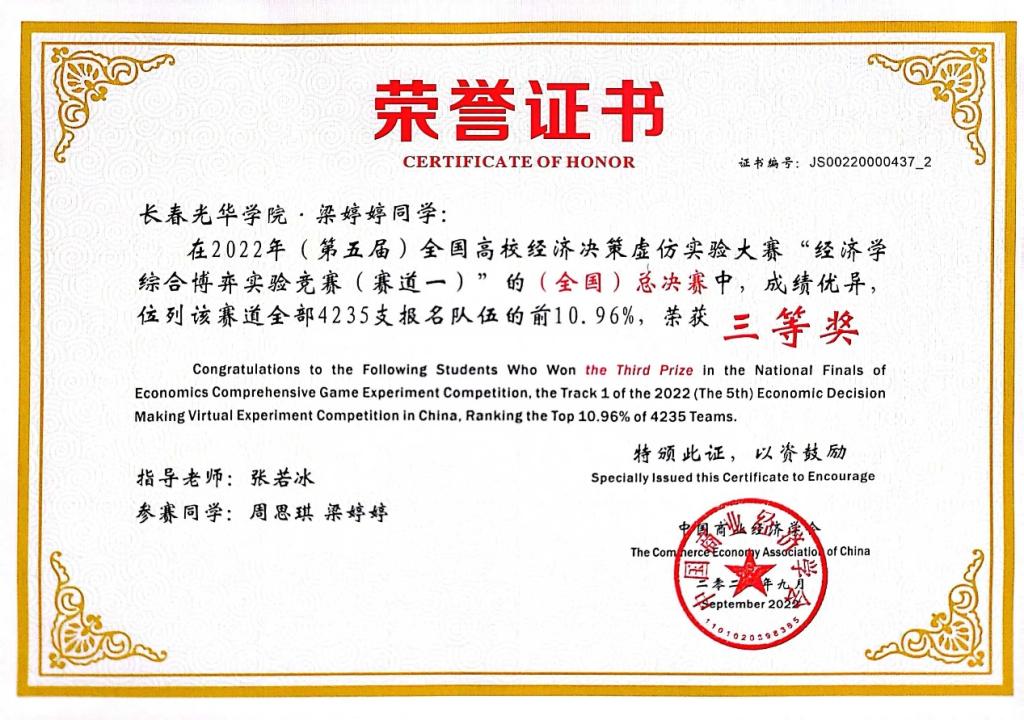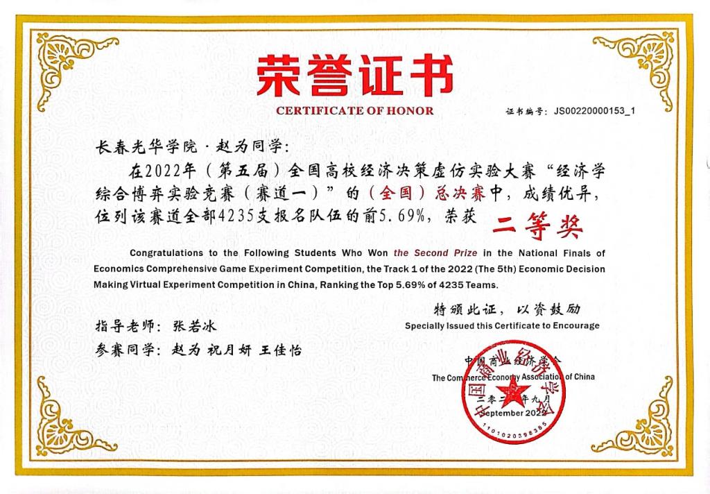 yl6809永利经济学专业积极组织学生参加该项竞赛,共有4支队伍参赛。在张若冰老师指导下,各位参赛学生团结合作、共同努力,历时4月有余,2支队伍晋级国赛。在国赛比赛阶段,通过与来自252所高校的4235支队伍激烈角逐,最终赵为、祝月妍、王佳莹同学获得国赛二等奖,周思琪、梁婷婷同学获得国赛三等奖。