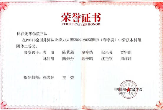 第十二届POCIB全国外贸从业能力大赛(春季赛)学生获奖情况