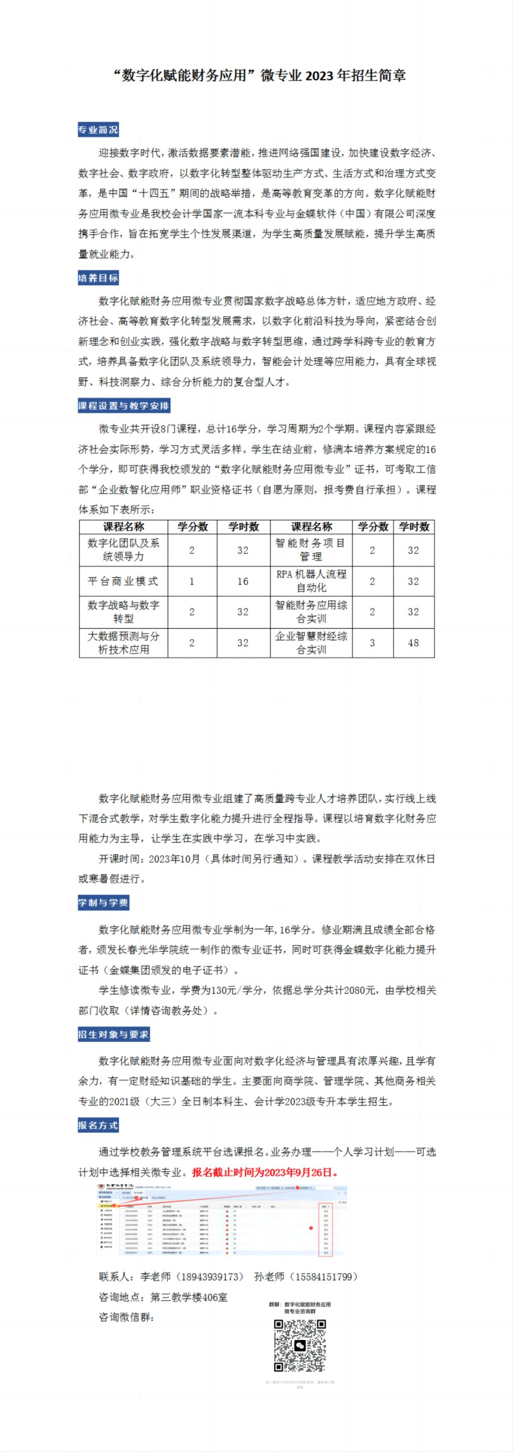 【通知公告】“数字化赋能财务应用”微专业2023年招生简章