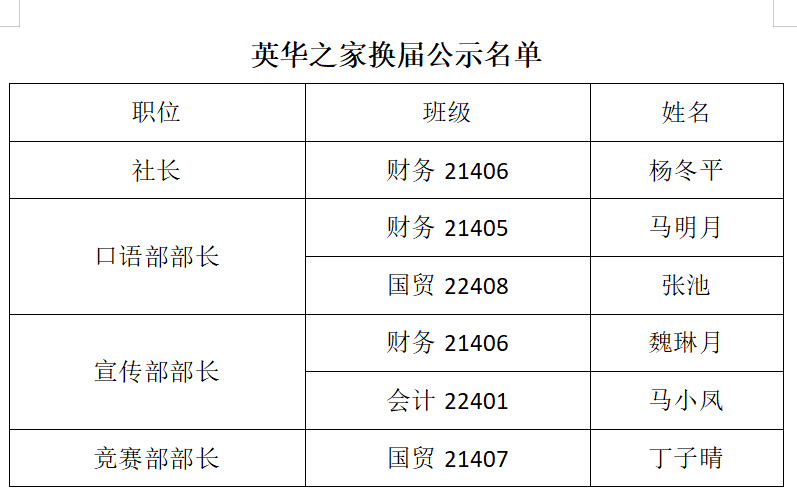 为了进一步营造学习、团结向上的社团氛围,培养学生的集体荣誉感和责任心。yl6809永利英华学习之家通过自主报名与竞选演讲,让竞选同学都有展示能力的机会,结合各位竞选人在英华学习之家的工作表现,经指导教师与英华学习之家原负责人的商议决定以下结果,现公示英华学习之家换届名单: