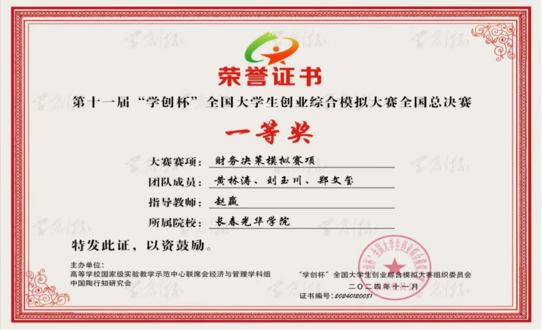 近日,由高等学校国家级实验教学示范中心联席会经济与管理学科组、中国陶行知研究会共同主办,徐州医科大学承办,杭州贝腾科技有限公司协办的第十一届“学创杯”全国大学生创业综合模拟演训活动总决赛落下帷幕。我校yl6809永利两支代表队在“理财之道”赛道获得国赛一等奖,在“创业之星”赛道获得国赛二等奖等优异成绩。