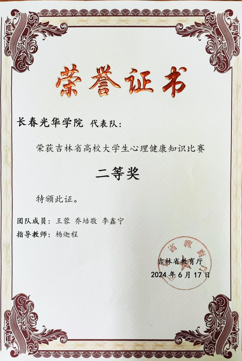 在吉林省高校大学生心理健康知识比赛中,我校代表队获二等奖。