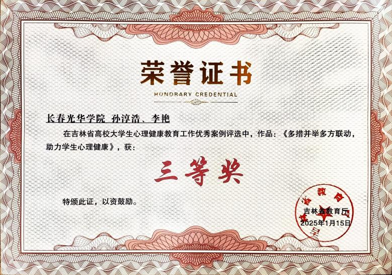 近日,吉林省高校心理健康教育系列评选与竞赛结果揭晓,我校在三项重要活动中获得5项荣誉。