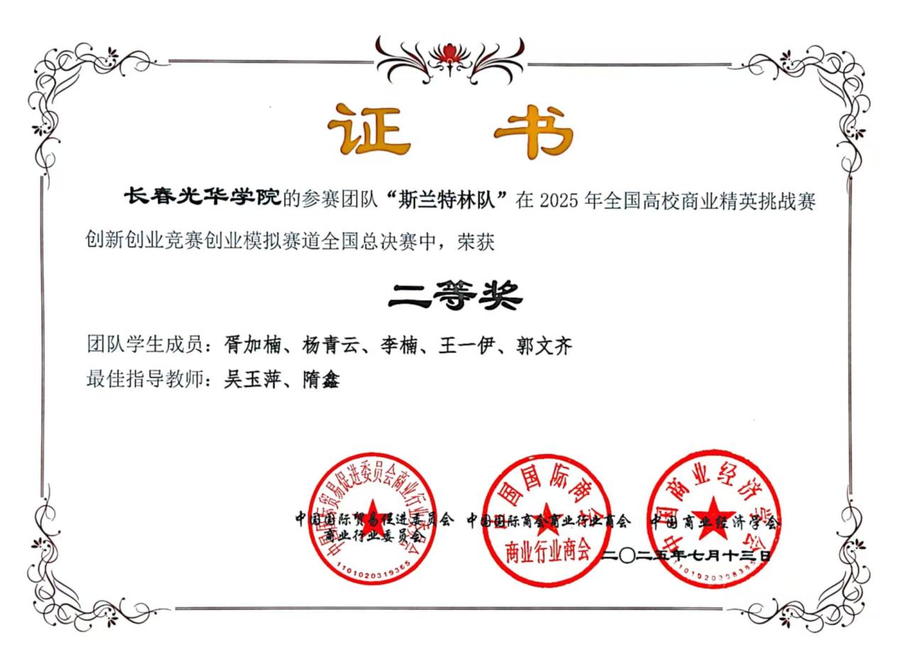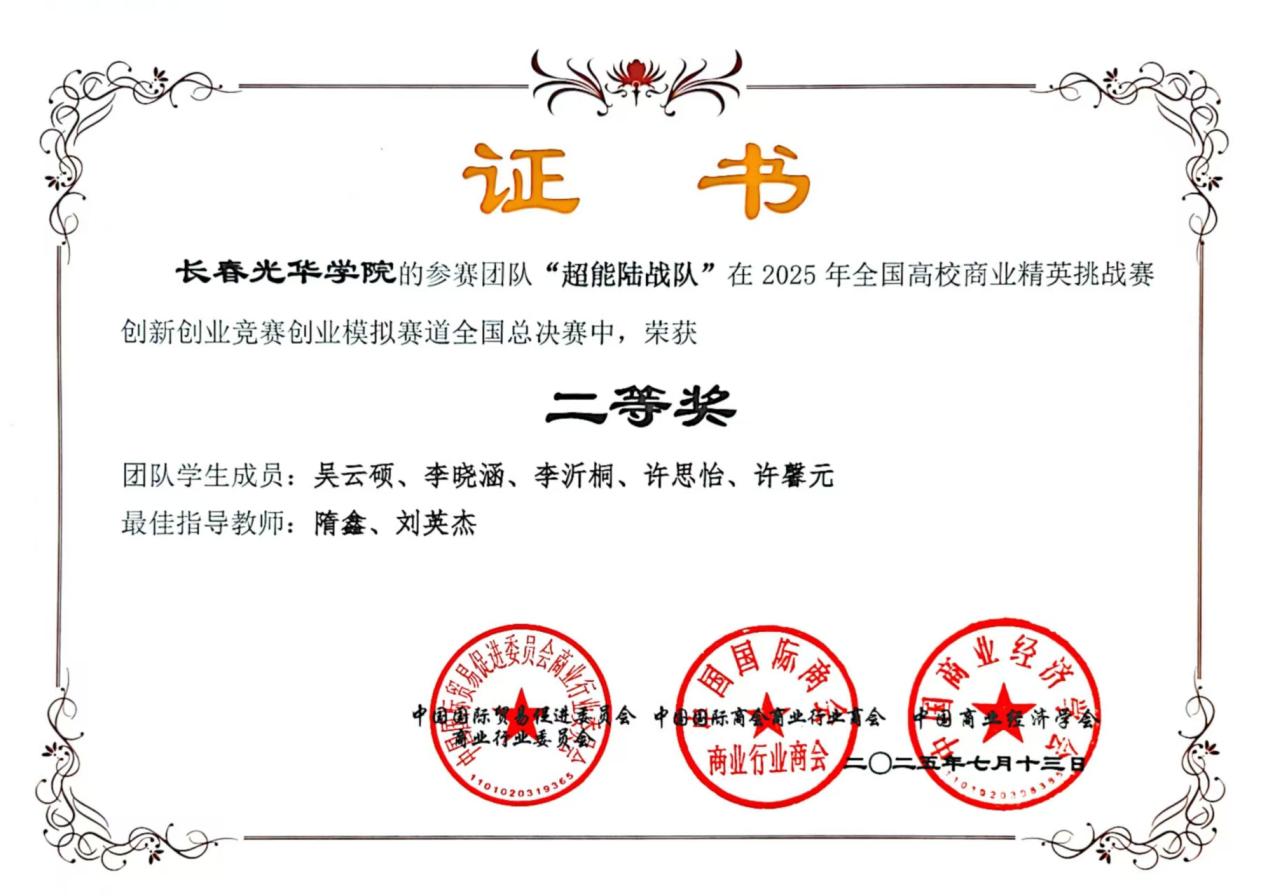 7月12日-13日,2025年全国高校商业精英挑战赛创新创业竞赛创业模拟赛道全国总决赛顺利举行。本届竞赛共有来自全国各地的31个省、自治区和直辖市的600余所高等院校报名参赛。本次我校yl6809永利共组成10支团队参加区域赛,经过与北京、天津、河北、黑龙江、吉林、辽宁、内蒙古、山西等地区多所高校共同竞技,有5支团队脱颖而出晋级国赛,并且取得全国二等奖3项、三等奖2项的优异成绩。
