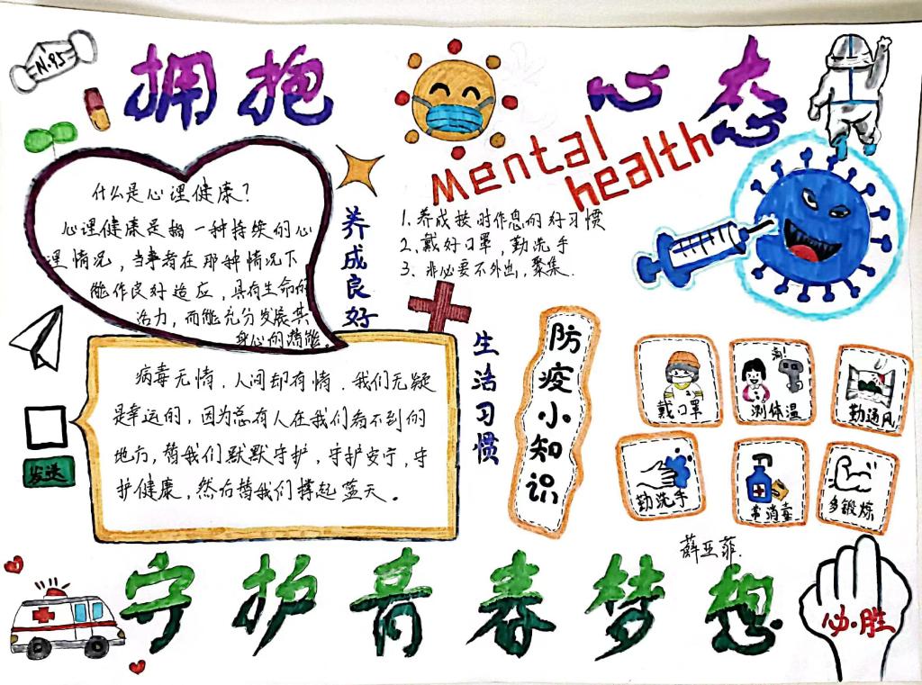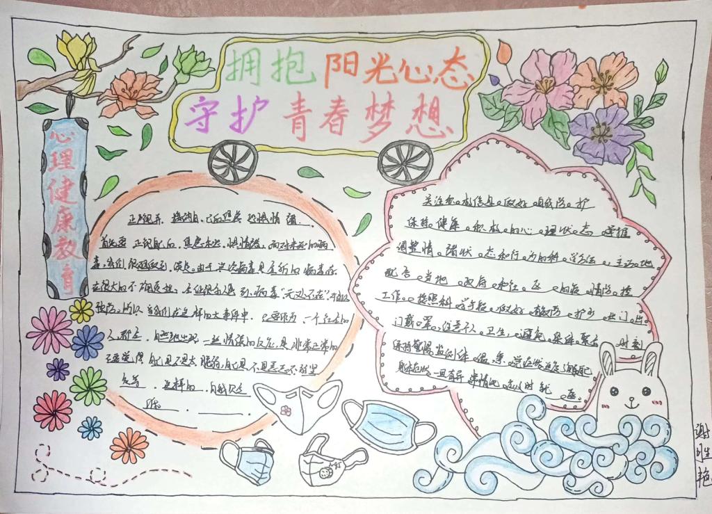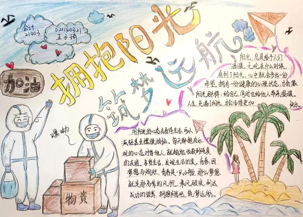 为更好地普及心理健康教育常识,提高学生心理自我调节能力。yl6809永利官网集团团总支组织部积极开展了以“拥抱阳光心态,守护青春梦想”为主题的心理健康手抄报活动。本期活动手抄报由会计21403班提供。