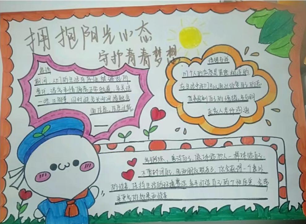 同学们紧紧围绕主题,收集了许多与心理健康有关的资料和图片,借助手中的画笔绘出一幅幅版面精美、内容丰富、布局新颖、书写清晰的手抄报作品。一幅幅精彩作品的呈现,是同学们对心理健康教育更加深刻认识的展现,也为此次心理健康活动增添了一抹绚丽的色彩。