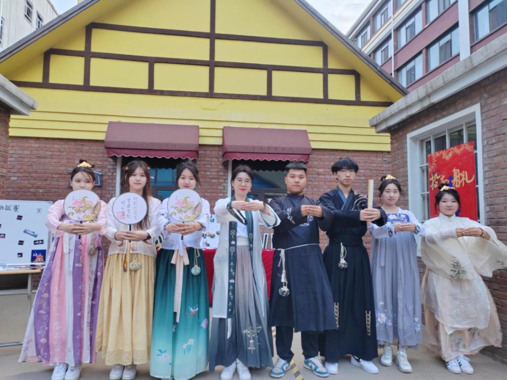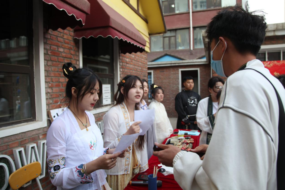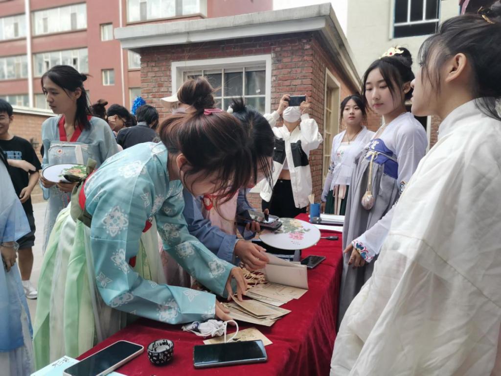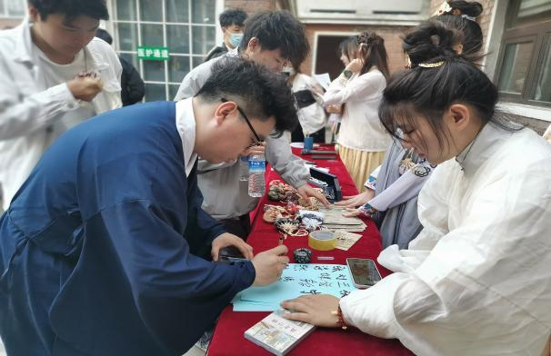 为迎接5·25全国大学生心理健康日让同学们充分抒发心绪,并且感受中华民族传统文化魅力,引导同学们认同、喜爱中国传统文化,了解丝绸之路的相关知识,营造朝气蓬勃、积极向上的氛围。yl6809永利官网集团于2023年5月25日在学校B区博学园长廊西侧举办“古风心韵,锦绣青春”主题特色活动。