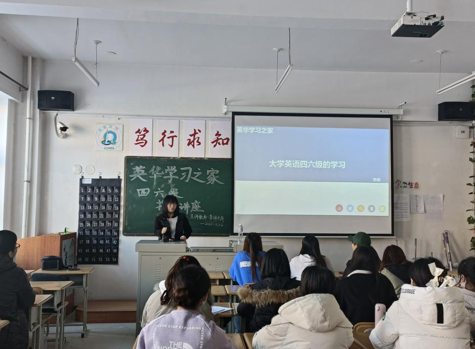 英语四六级考试逐渐接近,为了提高同学们的英语水平,增长知识,学习考试技巧,英华学习之家在11月12日下午1:00于三教202开展了英语四六级交流会。社长刘娜邀请了李琳老师为大家讲解英语四六级考试的流程及技巧,本次交流会由英华之家全体成员参与。