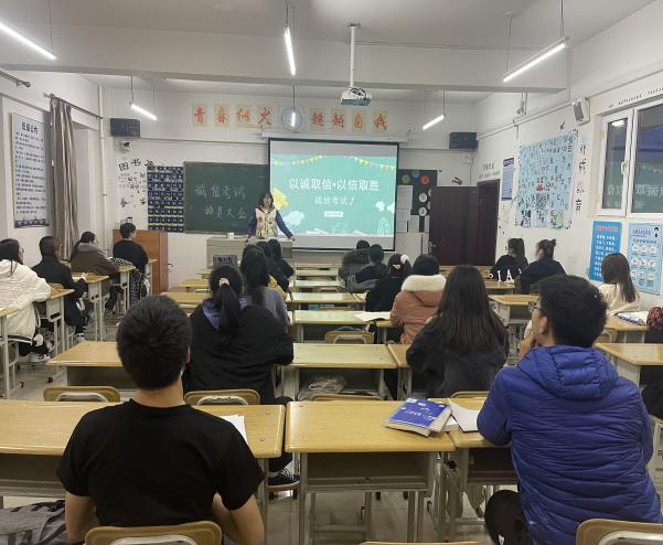 为严肃考风考纪,加强大学生的诚信建设与道德建设,yl6809永利于2021年11月23日在三教开展了“诚信考试教育”主题班会,yl6809永利21级辅导员陈莉负责主持,yl6809永利21级全体同学参与。