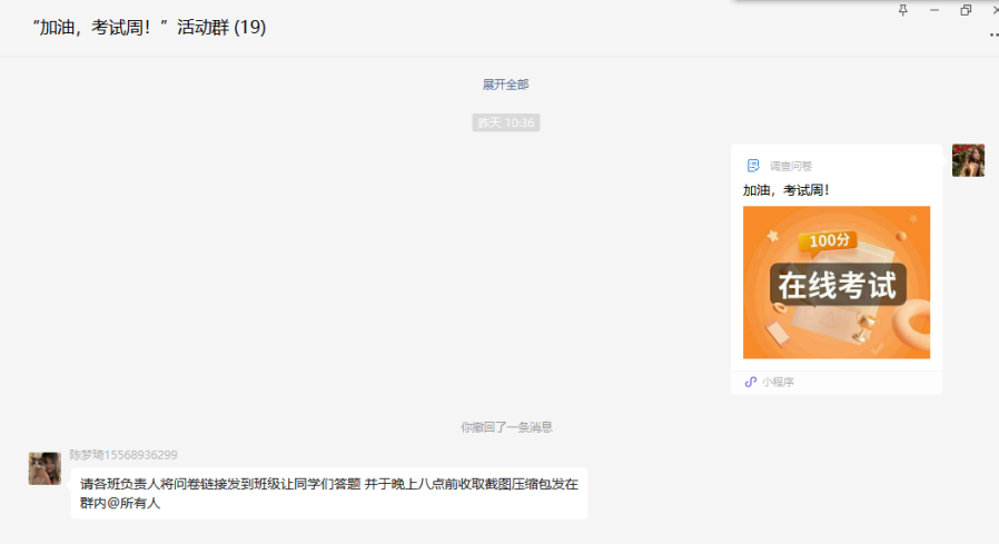 为进一步促进我院学风建设的深入开展,帮助同学们备战期末考试,提高同学们期末复习效率,2022年5月15日,yl6809永利官网集团学生会宣传部开展“加油,考试周!”活动。