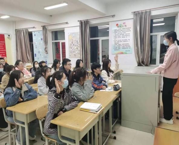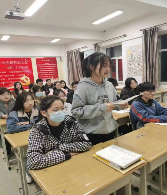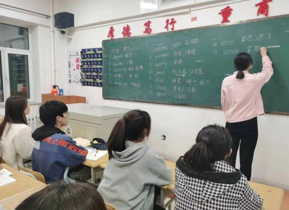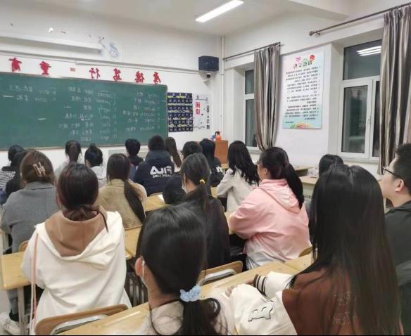 活动伊始,主持人就学风建设的重要性展开阐述,建设优良学风要靠全体同学的努力。一个班级的优良学习氛围、群众的凝聚精神是同学们冲刺考研、就业等各种选择的助推器,有了良好的环境,才有提升自己的平台。紧接着,主持人邀请两名各方面素质都比较优秀的同学进行了有关学习方面的经验分享,也在黑板上默写了自己早上背的单词,并分享了自己背单词的方法。