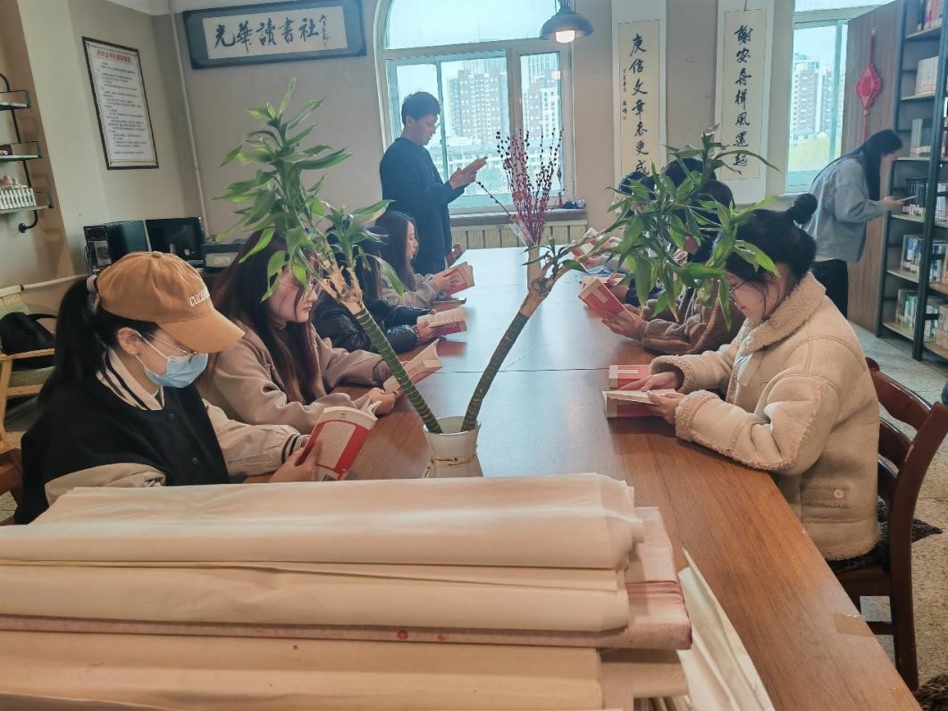 活动伊始,主持人郑文玺以“追风赶月莫停留,平芜尽处是春山”引出本次读书分享会主题,紧接着邀请同学们进行书籍分享。首先分享的是郭继彬同学,他将古典名著《西游记》进行了一番全新的解读。伴随轻柔的古典乐,李佳惠同学带我们领略着《诗经》之美。