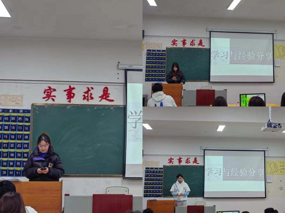最后,胡斌和李兆鑫两位同学对班级有考研意愿的同学进行了详细的分享和解答,包括考研学习方法、考研目标、择校经验、考研时间等方面的内容,旨在帮助同学们扫清考研路上的障碍,并呼吁优秀学生们以身作则,互帮互助,还强调了在学习生活中认真、细心的重要性,学会合理自我评估与定位,下定决心、坚定信心、守住恒心,以最大的努力争取最好的结果。