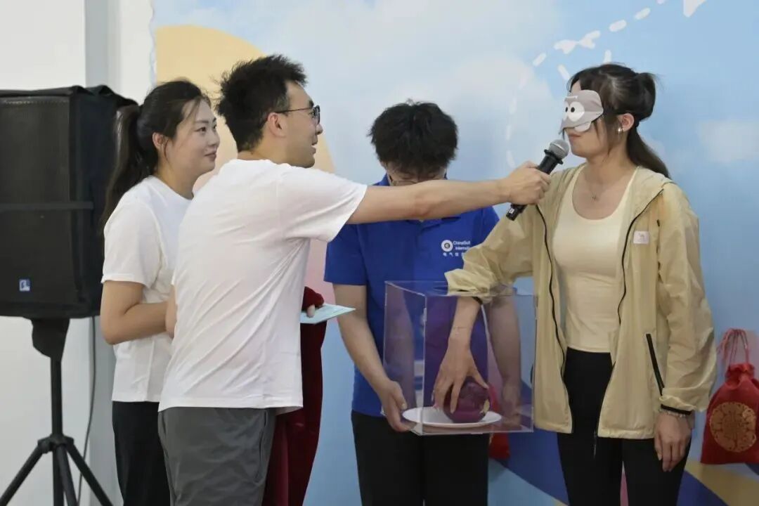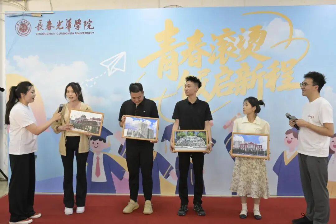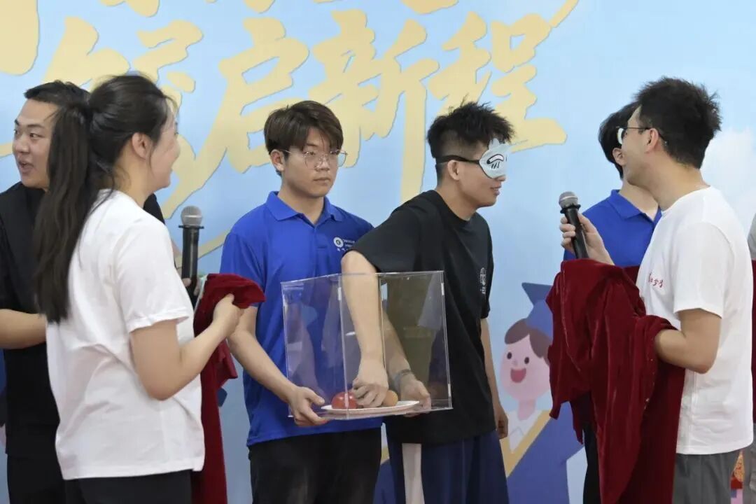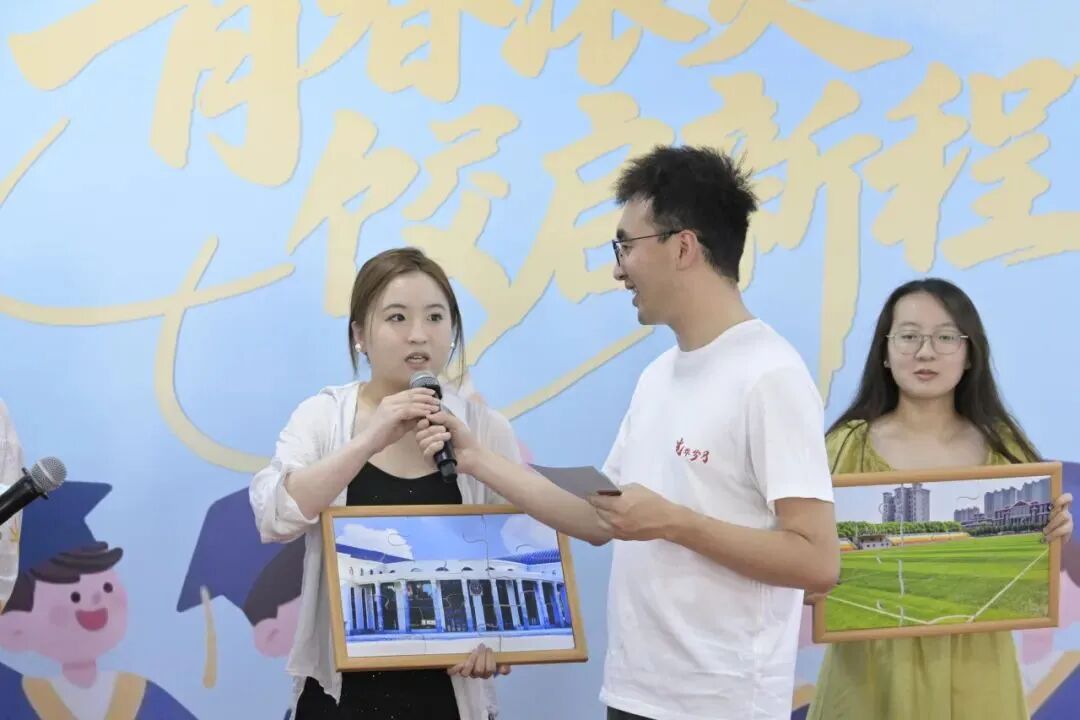 “盒中探秘,福语成真”互动环节,各院毕业生代表通过默契配合赢取象征美好祝愿的福袋。