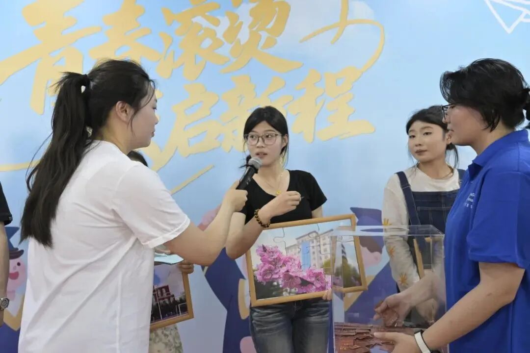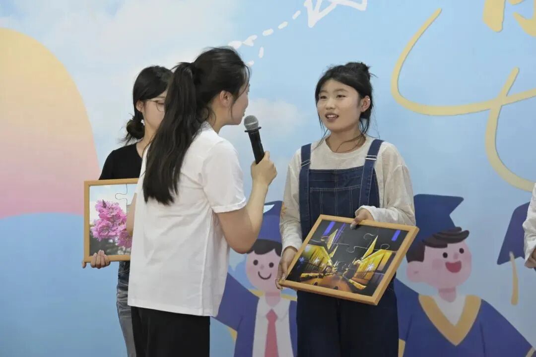 “记忆拼图”里,师生共同拼出了载着四年点滴回忆的校园标志性建筑图案。