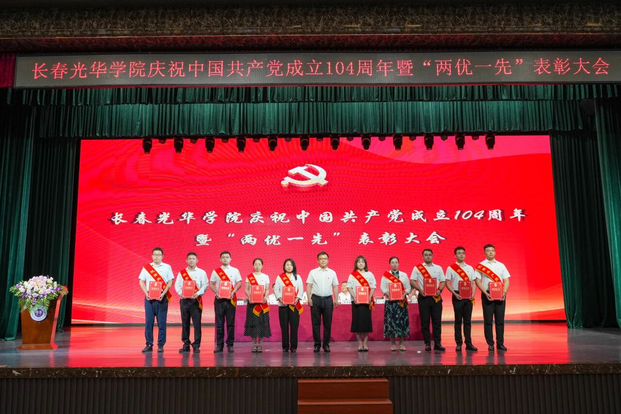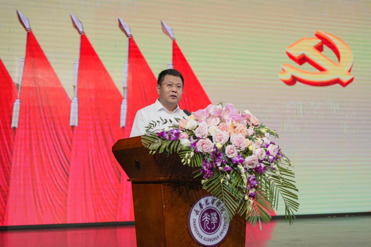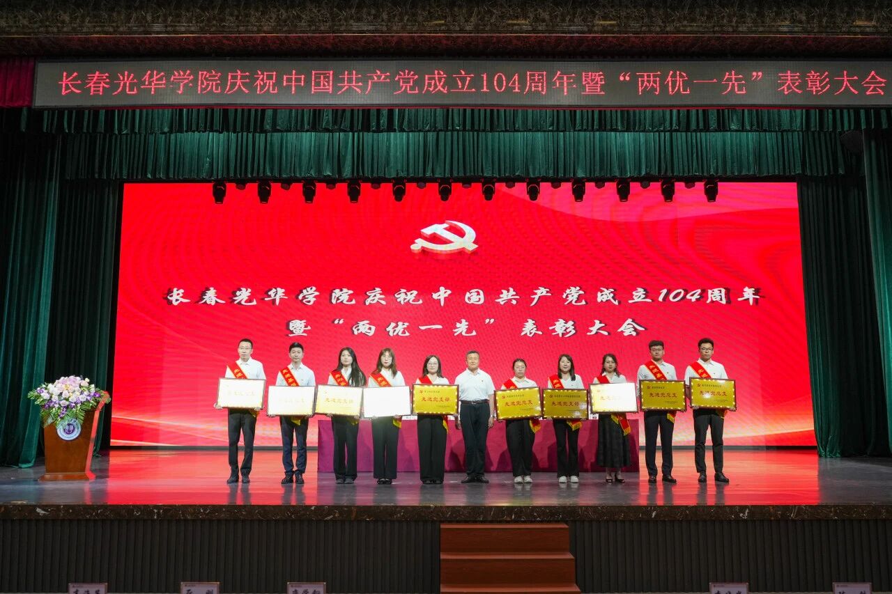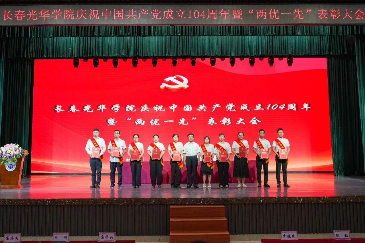 6月27日下午,我校在北校区艺术剧场召开庆祝中国共产党成立104周年暨“两优一先”表彰大会。学校党政领导班子成员,党群部门负责人,各党总支、直属党支部、基层党支部书记,师生党员代表,2025年上半年新接收的预备党员参会,大会由党委副书记兼副校长高海英主持。