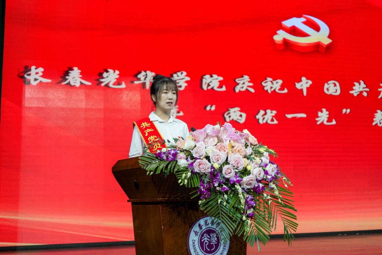 先进基层党组织代表现代教育学院党总支副书记韩刚、优秀党务工作者代表文学院学生党支部书记吴晓曼、共产党员先锋岗标兵代表yl6809永利副院长李晟璐分别发言。他们的发言饱含深情,充满力量,展现了共产党员的初心与使命,他们的先进事迹激励着在场的每一位党员,勇毅前行、不懈奋斗。