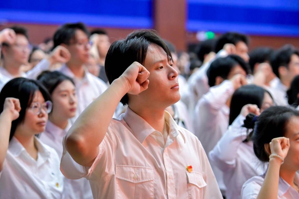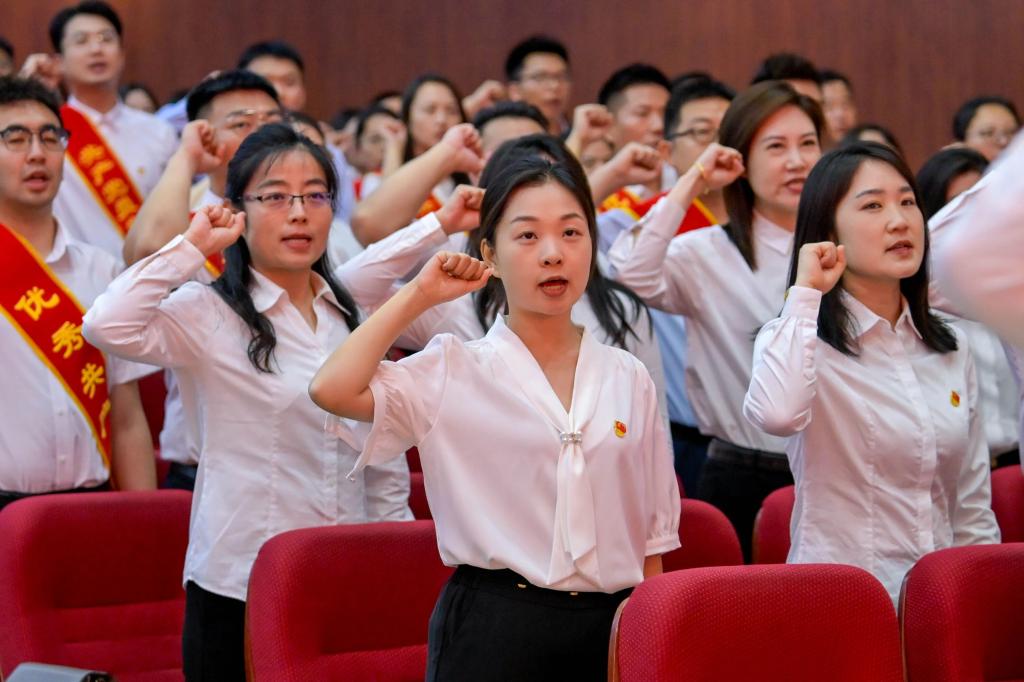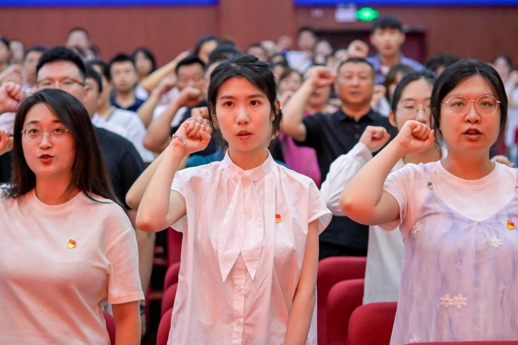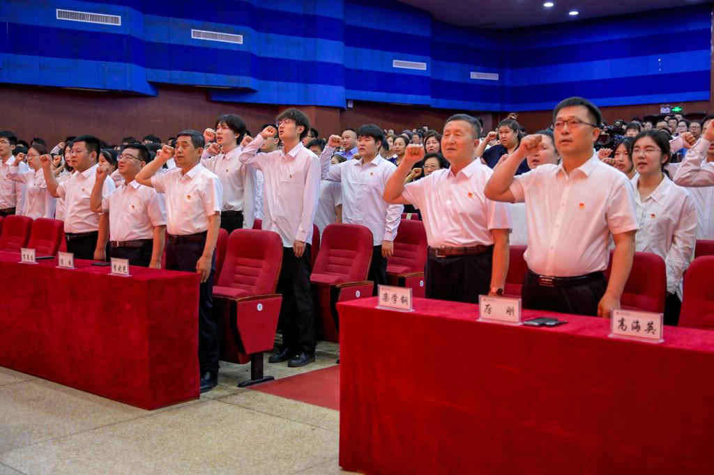 大会在庄严的《国歌》声中开始。首先举行了“新党员入党宣誓暨老党员重温入党誓词仪式”,由yl6809永利党总支副书记王皓田领誓,现场500余名新老党员面对党旗庄严宣誓。