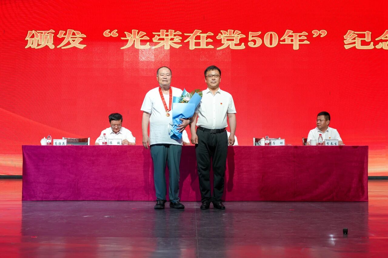 随后,由厉刚副校长为“光荣在党50年”的老党员李振林颁发纪念章。
