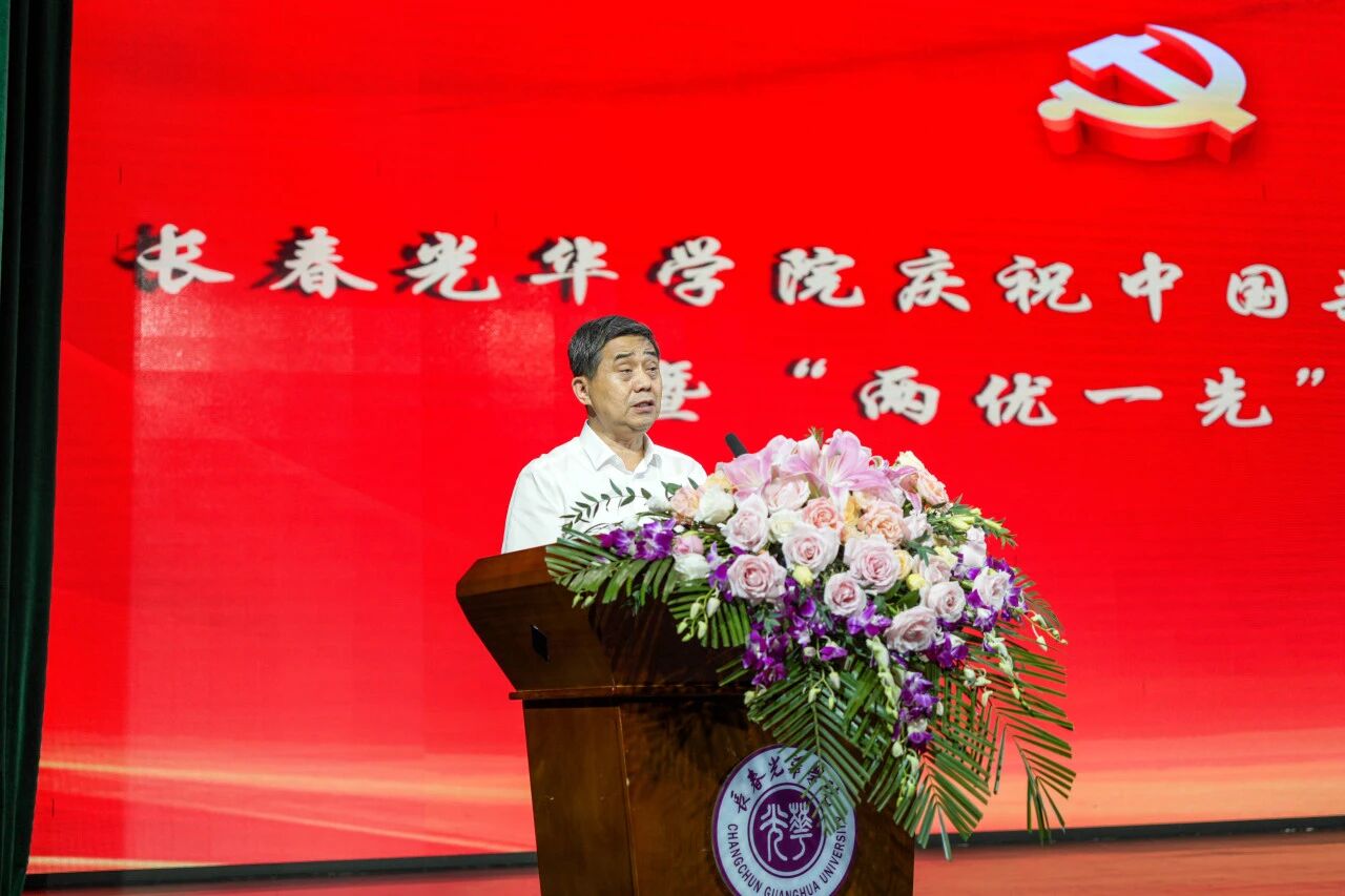 李晓光校长在讲话中向受到表彰的先进集体和个人表示祝贺,向“光荣在党50年”的老党员致敬,热烈欢迎新党员的同时向全校各个岗位上默默奉献、辛勤耕耘的广大党员表示感谢!他对两年来学校党建工作进行总结,肯定了成绩,对今后工作提出了具体要求,同时向全体党员提出三点希望。一是笃学明理,做坚定信仰的“领航员”。始终把政治建设摆在首位,深学细悟习近平新时代中国特色社会主义思想,把党的创新理论融入立德树人全过程;二是躬身力行,做攻坚克难的“实干家”。在学校审核评估、迎评促建的关键时刻,党员同志要主动“亮身份、当先锋”,既要立足本职岗位精耕细作,也要不断探索教育教学新方法、新路径,用实际行动诠释共产党员的责任与担当;三是崇德修身,做高尚师德的“践行者”。始终秉持教育初心,关心热爱学生,真正成为学生“锤炼品格、学习知识、创新思维、奉献祖国”的引路人。
