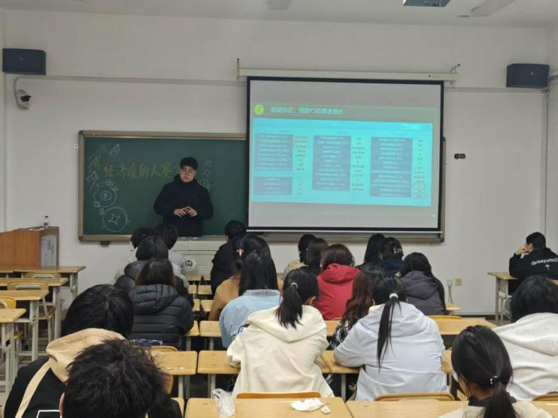 本次宣传活动特邀三位在第八届全国高校经济决策虚仿实验大赛中斩获国奖、省奖的优秀选手担任宣讲嘉宾。嘉宾们结合自身参赛经历,围绕大赛赛制规则、备赛核心要点、平台实操技巧及参赛价值等内容,为在场同学进行全面细致的讲解。