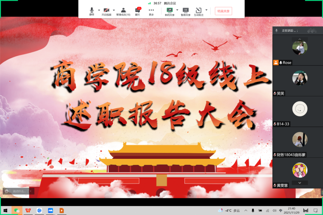 为充分调动各班团支部工作积极性,进一步加强学院基层团支部建设,yl6809永利分别于2021年11月29日下午4点在三教205教室召开19级团支书述职大会,于2021年11月29日晚9点在线上召开18级团支书述职大会。会议由yl6809永利团总支负责人丁彦竹主持,yl6809永利团总支书记禹阳、18级和19级全体团支书参加了会议。