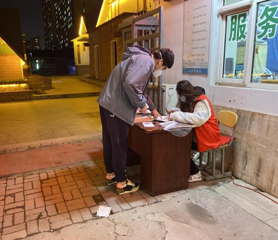 疫情防控从来不是一个人的单枪匹马,是一群人的众志成城。作为一名疫情防控志愿者,王洲洋同志也负责公寓前的检查出行工作,让校园更加有序严谨。她尽己所能,倾己全力,为疫情早日结束献出自己的全部力量。