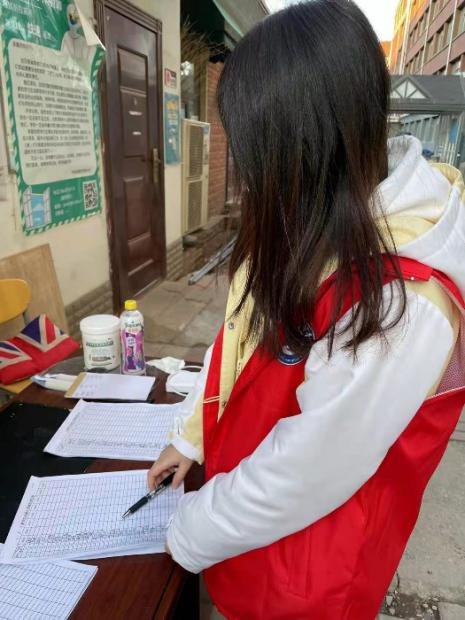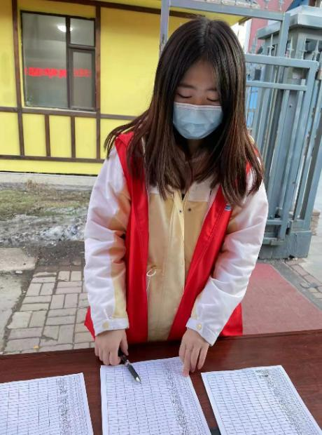 她经过十四天的集中隔离后回到学校,想用自己的力量去为学校做一些力所能及的事,因为2021年寒假曾在吉林市儿童医院做扫码测温志愿者,有相关工作经验。接到学校的相关防控指令后,她申请到男寝站岗,检查同学们的各项证件和出入记录,同时辅助班长进行班级试剂盒发放及回收,配合学院检查同学们的水印图片,并进行汇总,此外,她还加入学校“青马学员”突击队进行疫情防控相关工作。