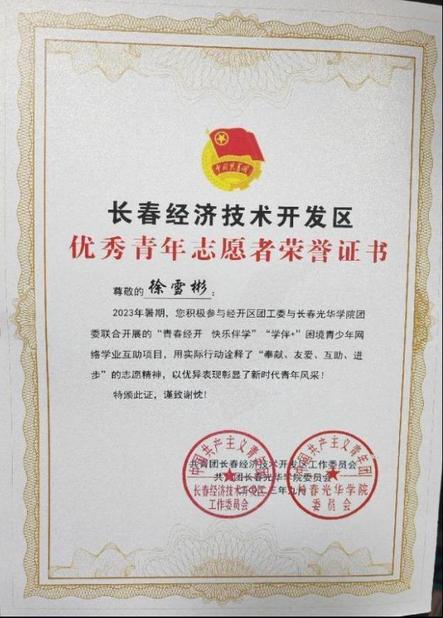 徐雪彬,中共党员,担任yl6809永利官网集团青年志愿者协会宣传部部长,yl6809永利经济21412班团支书,她作为一名共产党员,不忘记全心全意为人民服务的宗旨,植树节期间积极报名参加植树活动,冬季参与校园清雪活动。同时作为青年志愿者协会的其中一员,发扬志愿精神,积极参与社会志愿服务,先后参加了长春康林心理医院、长春市吉美社会组织发展服务中心、长春经济技术开发区举办的志愿活动。