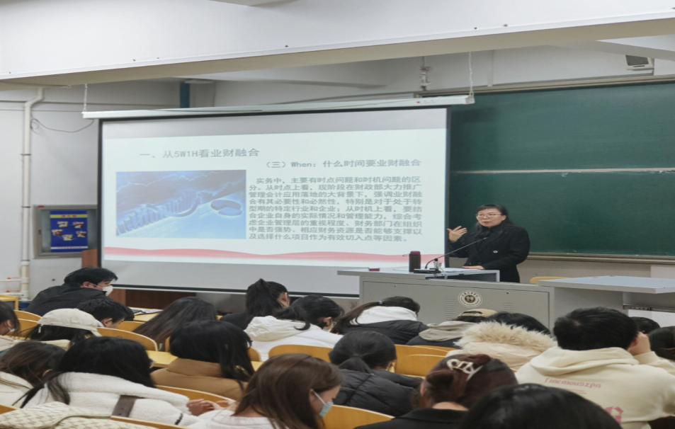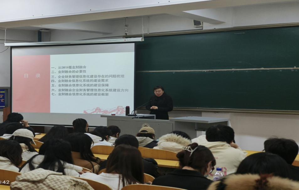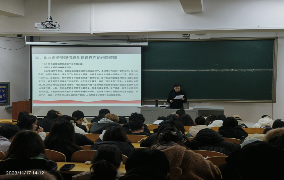 为适应现代商业社会的需求,拓宽财会类专业学生的信息化视野,了解财务管理信息化的重要性,yl6809永利于11月17日在第二教学楼116教室开展了主题为“业财融合背景下企业财务管理信息化建设研究”的专题学术报告讲座,本次讲座由财务管理系教授王吉凤主讲,2021级财务管理专业和2022级会计学专业的全体学生参加。