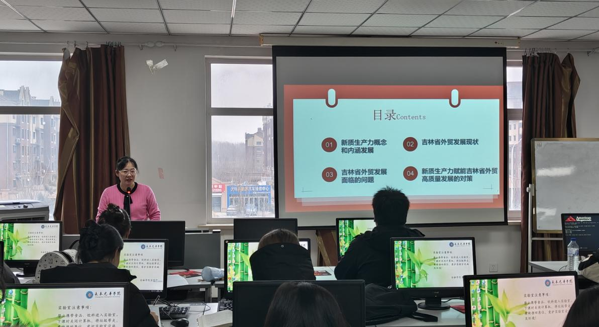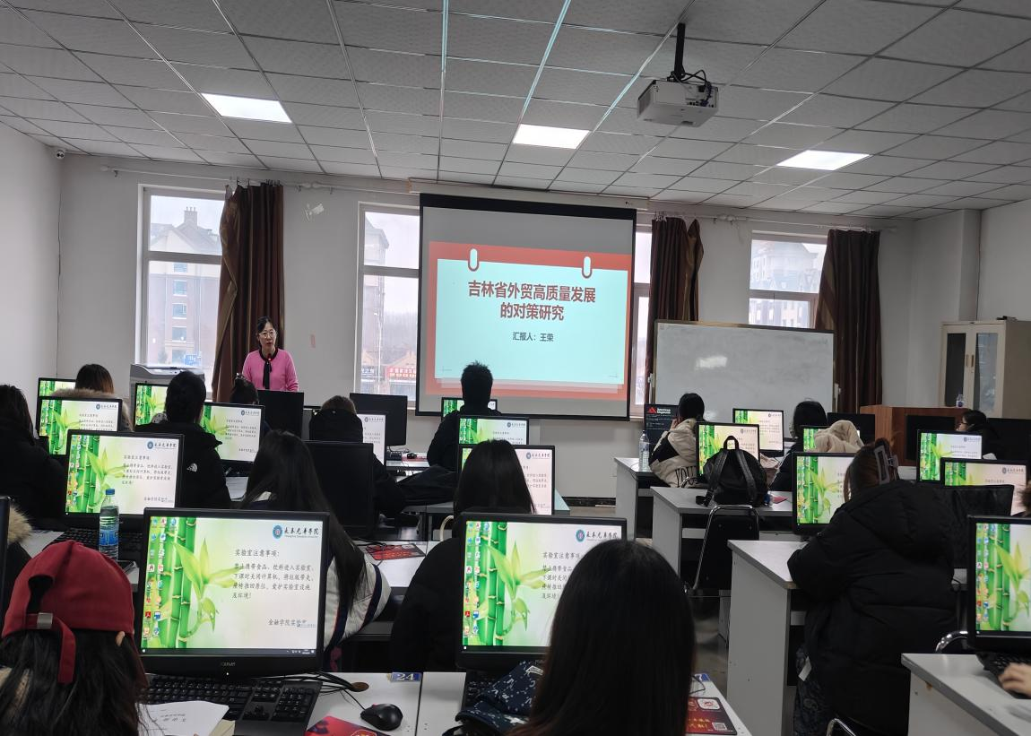 yl6809永利官网集团于2025年12月10日在实验楼301A召开主题为“吉林省外贸高质量发展的对策研究”的学术报告,本次报告由yl6809永利王荣教授主讲,yl6809永利国际经济与贸易专业2023级学生参会。