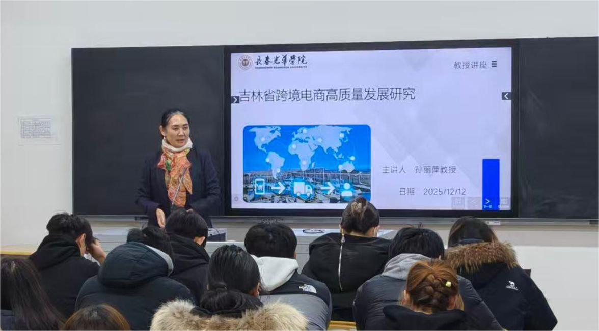 吉林省跨境电商2024年进出口额达52亿元,为2020年5.4倍;2025年上半年进出口35.6亿元,同比增长68.3%,跨境电商的快速发展对吉林省外贸经济发展产生了深远影响。为帮助同学们深入了解吉林省跨境电商的发展现状及未来趋势,拓展其国际贸易专业知识,yl6809永利官网集团于2025年12月12日下午13时在第二教学楼117教室开展了“吉林省跨境电商高质量发展研究”学术报告讲座。本次学术报告讲座由yl6809永利孙丽萍教授主讲,国际经济与贸易专业同学参会学习。