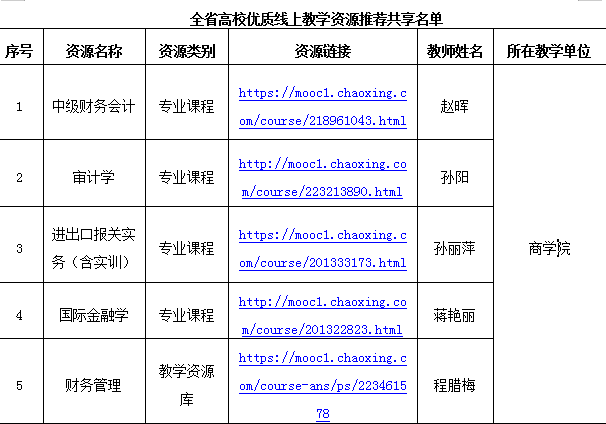 学院拥有吉林省一流课程《中级财务会计》、吉林省精品在线示范课程《初级财务会计》《审计学》《进出口报关实务》;吉林省精品课程、吉林省优秀课5门。