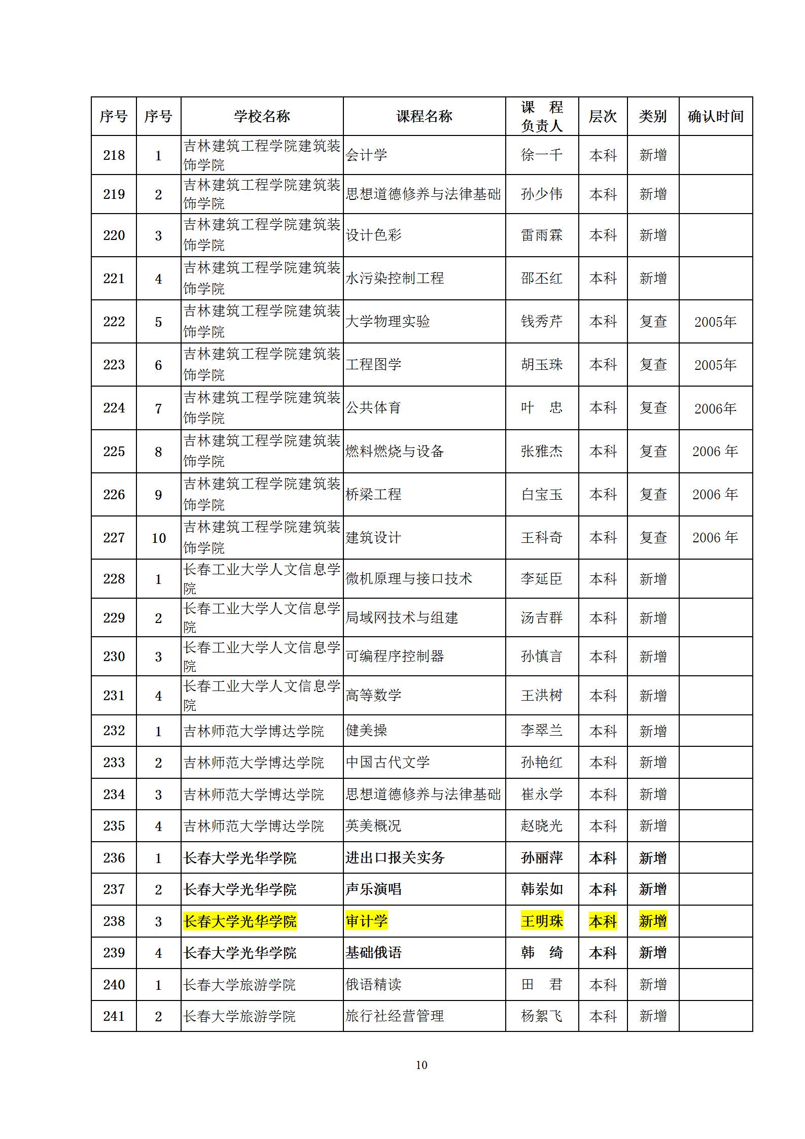 学院拥有吉林省一流课程《中级财务会计》、吉林省精品在线示范课程《初级财务会计》《审计学》《进出口报关实务》;吉林省精品课程、吉林省优秀课5门。